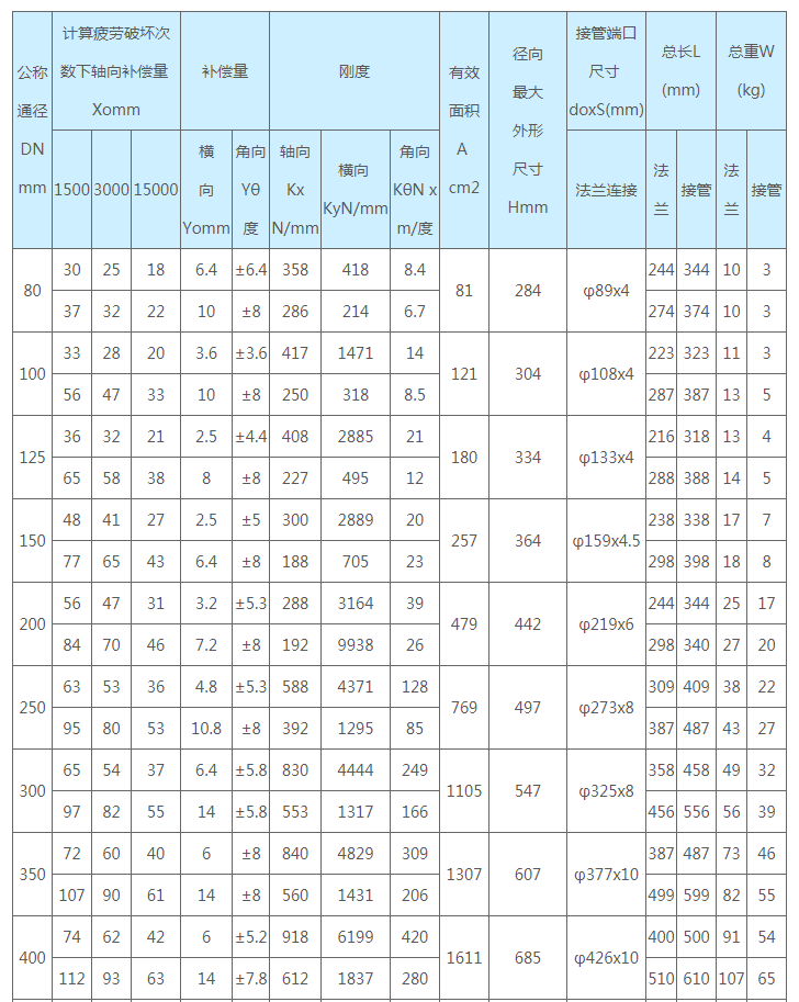 通用型波紋補償器技術參數:公稱壓力1.0MPa